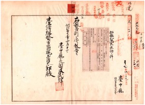 四三 第四三号 苗栗庁苗栗一堡元後壠街黄媽金ノ船鑑札流失ニ付キ該鑑札ヲ無効トスル旨同庁ヨリ通知ノ件