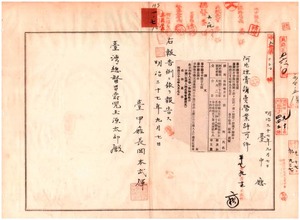 一〇七 第一〇七号 台中庁大肚中堡梧棲港街土名梧棲港蔡茂如・同庁捒東上堡葫蘆墩街李王塗ニ阿片烟膏請売営業ヲ特許ス