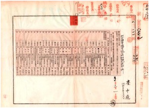 一二〇 第一二〇号 台中庁大肚下堡大肚庄土名大肚謝炎ノ阿片請売特許鑑札ヲ、頼上白・頼■(走+坐)・頼昌・林宝・陳成・施晟・林寿元・張頭・黄棉・張乞食・蔡槌・張炎・林査某・林戈・鄭老江・謝亨・蔡周元・鄭岳・陳炉・蘇応忠・林寧波・林生木・張伝章・黄■(尾+子)・蔡老崁・張心婦・陳樹・楊獅・廖心漸・張福・頼知古・呉賊・屠建屏・盧唐山・張炬明・頼尽・陳千・許田・曽麺・何宗漢・張達・郭波・張得鴻・紀和・蔡詔螺・陳錦・楊赤牛・林文秋・紀丁発・陳喜・楊佃・陳愛・陳昌・陳佃・陳老吉・陳渓圳・張茂法・陳湧浚・張■(金+鼎)