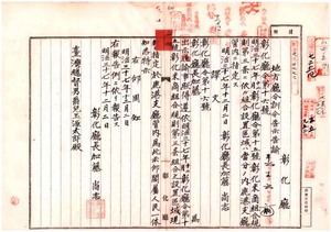 一四 第一六号 明治三七年一二月彰化庁令第一五号彰化米商組合規則ニ依ル設置区域ヲ鹿港支庁管内ニ指定スルノ件