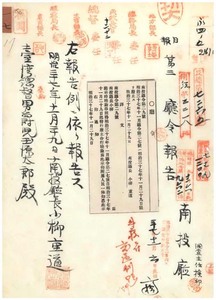 一七 第二九号 南投庁五城堡頭社庄ニ発生シタ牛疫熄滅ニ付キ当該地域ニ発令シタ牛羊属ノ出入及ヒ病毒伝播ノ虞アル物品ノ運搬ヲ停止シタル処置ヲ解除ス