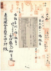 五一 第一一号 台中庁管内ニ牛疫発生ニ付キ蔓延ノ兆アルニ依リ牛羊属ノ出入及ヒ病毒伝播ノ虞アル物品ノ運搬ヲ停止シタル旨同庁ヨリ通知ノ件