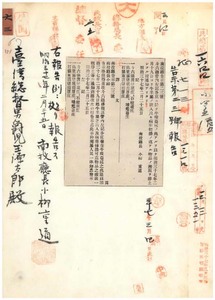六三 第二三号 斗六庁管内ニ牛疫発生ニ付キ蔓延ノ兆アルニ依リ牛羊属ノ出入及ヒ病毒伝播ノ虞アル物品ノ運搬ヲ停止シタル旨同庁ヨリ通知ノ件