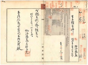 六四 第二九号 明治三二年二月府令第一三号ニ依ル収入印紙売捌所ノ数及区域制定ニ伴ヒ明治三二年三月元台南県告示第四号ノ当庁管内分廃止ノ件