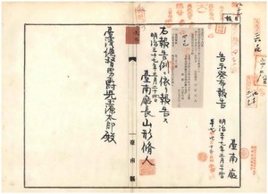 六三 第二六号 台南庁台南市街做針街中山喜四郎ノ銃猟免状遺失ニ付キ該鑑札ヲ無効トス