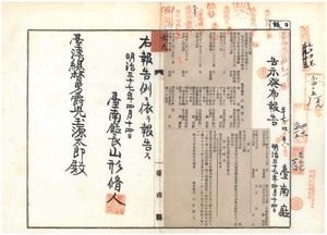 台南廳告示第三十三號阿片吸食鑑札無效ノ件、台南廳告示第三十四號佐賀縣東松浦郡呼子村役場燒失ニ付キ手續ノ件