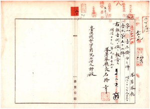 八〇 第五三号 蕃薯リョ庁羅漠外門里蕃薯リョ街収入印紙売捌人有川宜一ノ廃業及ヒ同街石丸長城ニ収入印紙売捌許可ノ件