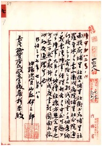 七 南投庁埔里社羅金水ヨリ寄附ノ台北衛戌病院埔里社分院通路トシテ用途指定ノ寄附地地種組換ノ件