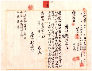 明治三十六年六月引渡#ル台灣神社敷地中臺北廳長士林支廳警察官吏劍潭派出所敷地トシテ今後モ必要ノ期間使用ノ旨右神社宮司ニ通牒