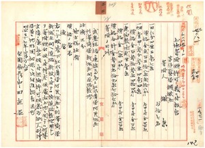 三二 謝乘・林克昌・康番古・康氏招・康梓・康栄燦・康瑞・・邱海・林漢旺・林李坎・謝■(木+叢)・陳老結・蕭允管理人張蕭氏阿有・蕭瑞・蕭茂・蕭朱氏好・張来伝・陳尤結・林鶴寿ヨリ出願ノ道路敷地用トシテ土地建物寄附許可ノ件宜蘭庁長中田直温ヨリ報告