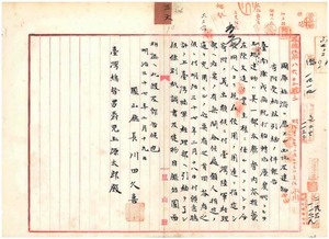 三六 台南衛戍病院打狗転地療養所ニ充用トシテ寄附セシ土地ハ土地調査ノ結果民業ニ属シ業主陳文遠ニ還付サレタルヲ更ニ前同一ノ目的ヲ持テ寄附出願ニ付キ陸軍用地ニ編入方陸軍大臣ヨリ還付ノ旨内務次官ヨリ通牒右ニ付キ其旨鳳山庁長川田久喜ニ移牒