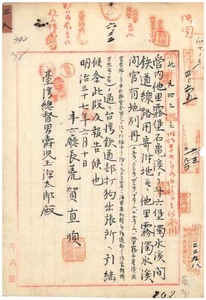斗六廳長報告他里霧堡石龜溪ヨリ斗六堡濁水溪間鐵道線路用トシテノ寄附地及他里霧濁水溪間ヲ官有地ハ鐵道部打狗出張所ニ引繼ノ件