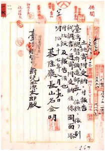 一六 基隆庁管内鉄道用地トシテ林添鳳・劉麒麟・周安平ヨリ土地原野ノ寄付受納ノ件報告
