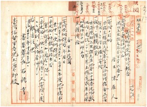 六 蕃薯リョ管内陳屋人ヨリ旗尾警察官吏派出所屋宇及宿舎用トシテ草藁土塊造家屋一棟寄附受納許可ノ件同庁長石橋亨ヨリ報告