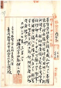 一七 内務次官山形伊三郎ヨリ通牒ノ杜慶・杜晋・杜蛤及ヒ顔長盛・願谷枝ヨリ寄附ノ土地ハ陸軍用地ニ編入方内務大臣芳川顕正ヨリ照会ノ件右ニ付キ陸軍経理部ニ引渡方基隆庁長山名金明ヘ通達ノ件