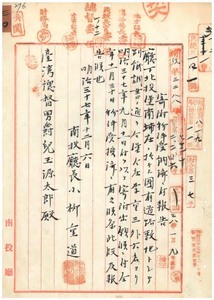 三〇 南投庁管内国有道路敷地トシテ李市之外六名 ヨリ土地寄附受納ノ件同庁長小柳重道ヨリ報告