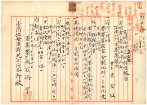 三二 蕃薯リョ庁管内庁官舎敷地用トシテ業主黄雲政ヨリ土地ノ寄附受納ノ件同庁長石橋亨ヨリ報告