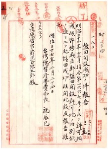 專賣局長報告明治三十二年十月二日指令第一六六七號ヲ以テ許可セシレタル野崎武吉郎ノ開設鹽田ハ成功ノ件