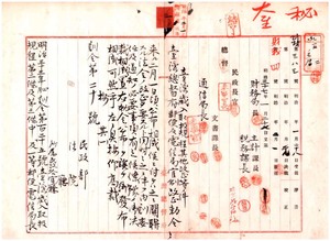 一 台湾総督府郵便及電信局官制改正ニ伴フ明治三三年四月訓令第一二五号台湾歳入取扱規程中改正 、歳入徴収分掌官引継ノ件 、歳入徴収官ノ事務ヲ各庁分掌官ヘ委任ノ件通知、台北郵便局台南郵便局歳入徴収官事務打切通知、明治三六年二月訓令第一五号台湾総督府所属出納官吏命免並身元保証金ニ関スル取扱規程中改正 、明治三二年一一月訓令第三一七号中改正ノ件