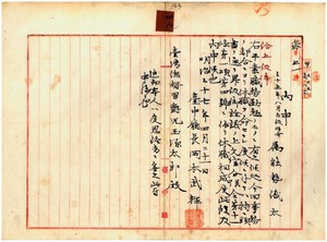 四八 台中庁属能勢織太ヲ昇級ノ上事務ノ都合ニ依リ休職ヲ命ス