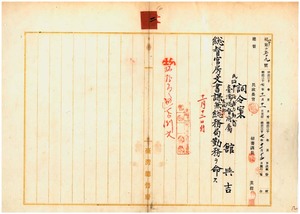 二 民政部総務局勤務総督府属舘与吉ニ総督官房文書課兼総務局勤務ヲ命ス