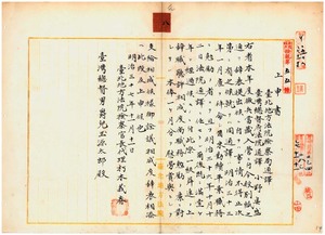 八 台北地方法院検察局総督府通訳法院通訳小野真盛ハ第一二師団ニ徴兵入営ノ為メノ辞職願ニ依リ本官ヲ免シ事務格別勉励ニ付キ退官一時金ヲ賞与ス