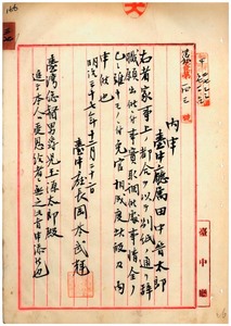 三七 台中庁属田中晋太郎ノ辞職願ニ依リ本官ヲ免ス