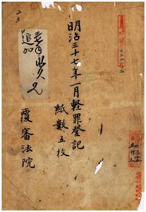 一 明治三七年一月分 軽罪登記覆審法院 台北地方法院 一枚同院新竹出張所 二枚台中地方法院 一枚台南地方法院 一枚