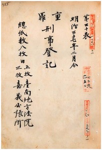 八 明治三七年二月分 重罪刑事登記台南地方法院 五枚同院嘉義出張所 三枚