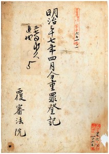 一 明治三七年四月分 重罪登記覆審法院 台北地方法院台中出張所 二枚台南地方法院 一枚