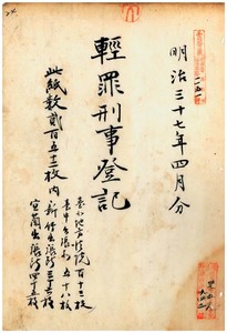 四 明治三七年四月分 軽罪刑事登記台北地方法院 一三〇枚同院新竹出張所 三四枚同院宜蘭出張所 四五枚同院台中出張所 四一枚