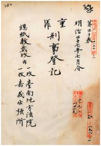六 明治三七年七月分 重罪刑事登記台南地方法院 一枚同院嘉義出張所 一枚