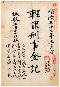 四 明治三七年一一月分 軽罪刑事登記台北地方法院 一〇五枚同院台中出張所 七八枚同院新竹出張所 三五枚同院宜蘭出張所 六枚