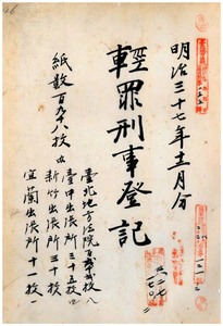 四 明治三七年一二月分 軽罪刑事登記台北地方法院 一二二枚同院台中出張所 三五枚同院新竹出張所 三〇枚同院宜蘭出張所 一一枚