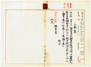 中西政人陞位上奏發表前死亡ノ件(內務大臣)