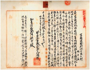 三 宜蘭庁警部ノ江口良三郎・田丸直之・松尾温爾・中村一角・小島仁三郎、宜蘭庁警部補ノ岡本亮太郎・前田松五郎・大島稔・松本勇作・加藤幸右衛門・野田貢ヘ深坑・宜蘭隘勇線設置ニ関シ賞与ノ件