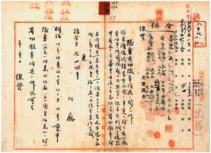 一七 宜蘭庁ノ隘勇伍長ノ范阿助・和田一之進・や大目・潘紅爻・陳阿周・呂阿同・潘阿生・林若・李天枝・李阿草・游安印・川井龍三郎、隘勇ノ何順風・金烏秋・劉邦枝・楊重興及ヒ深坑庁ノ隘勇伍長ノ楊梧桐・王蔡・高進・高海・陳標、隘勇ノ張嘩・柳田・張襖・許賜福及ヒ桃仔園庁ノ隘勇伍長ノ李阿石・蕭伝明・張阿遑・東屋敷亀次郎・林徳旺、隘勇謝阿栄及ヒ新竹庁ノ隘勇伍長ノ李呈・孫阿番・林謝細妹・徐海生・藍金台・曽東河・繆廷芳・魏陳興・何麦賢、隘勇ノ鐘阿丁・温阿喜及ヒ苗栗庁ノ隘勇伍長厳光輝及ヒ台中庁ノ隘勇伍長詹大烟及ヒ南投庁ノ隘勇潘(1904/11/14~1905/04/07);苗栗庁ノ隘勇伍長ノ吉田幸一郎・黄阿興・盧阿勝・彭阿良、隘勇陳元・劉阿来・劉阿生・蔡枝来・黎阿添及ヒ台中庁ノ隘勇陳阿松及ヒ南投庁ノ隘勇ノ梁有得・卓旺ヘ隘勇有功徽章ヲ附与スルノ件(指令第六七八号)(1905/02/07~1905/04/24);宜蘭庁長中田直温ヨリ稟申ノ宜蘭庁ノ隘勇伍長游天炉、隘勇ノ劉興才・謝阿汝ヘ隘勇有功徽章ヲ附与スルノ件(指令第六九六号)(1905/03/25~1905/04/06);台中庁長岡本武輝ヨリ稟申ノ台中庁隘勇伍長荘旺ヘ隘勇有功徽章ヲ附与スルノ件(指令第七九六号)(1905/04/05~1905/04/17);台中庁長岡本武輝ヨリ稟申ノ台中庁隘勇伍長詹生ヘ隘勇有功徽章ヲ附与スルノ件(指令第七九四号)(1905/04/05~1905/04/17);台中庁長岡本武輝ヨリ稟申ノ台中庁隘勇陳亮ヘ隘勇有功徽章ヲ附与スルノ件(指令第八九六号)(1905/04/19~1905/04/28);台中庁長岡本武輝ヨリ稟申ノ台中庁隘勇伍長羅坤興ヘ隘勇有功徽章ヲ附与スルノ件(指令第九六一号)(1905/04/27~1905/05/09)