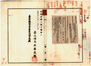 五八 第五号 台北庁大稲花北門外街松山松太郎・台北庁府中街中村喜代蔵ノ売薬行商営業免許取消ノ件