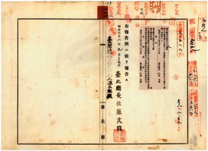 一二二 第一九八号 王明月ヨリ収入印紙売捌所ヲ台北庁大加蚋堡大稲花南街ヘ移転ノ旨届出ノ件