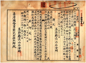 一八六 第一六一号 明治三七年律令第九号ニ依リ一円銀貨幣 ノ価格ヲ金九八銭ニ改定ノ件