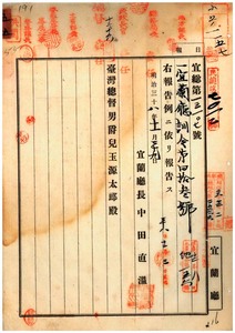 宜蘭廳訓令第四十三號警察官吏所轄內巡回月額旅費等級表ノ件