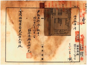 二〇三 第二八号 乾林三・金子重太・郭山藻・鄭朝楹・沈温郷・藤森平十郎・胡春木・郭孰・時藤熊次郎・林受三・黄廷祥ニ収入印紙売捌ヲ許可ス