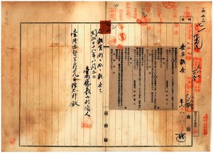 七二 第五九号 明治三八年四月告示第二九号烟草仲売捌人ノ定員改正ノ件[四七も見よ] (1905/08/05~1905/08/29);第六〇号 蕃薯椙庁管内ノ疫牛撲殺ニ付キ同庁ヨリ通知ノ件(1905/08/05~1905/08/29)