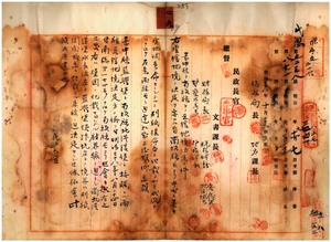 二九 南投庁長小柳重道ヨリ照会ノ台中庁藍興堡ト南投庁北港 渓堡ト接触スル両庁管轄地境界線ノ儀ニ付キ決定通知ノ 件