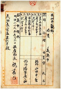 一六 総督府技師山田申吾ニ民政部殖産局農商課長竹島慶四郎(1905/03/03~日付エラー);総督府技師福留喜之助ニ民政部殖産局拓殖課長竹島慶四(1905/03/03~日付エラー)