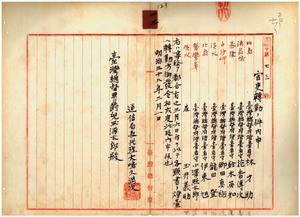 二三 淡水灯台勤務総督府灯台看守林才助ニ北島灯台勤務ヲ命シ、基隆灯台勤務総督府灯台看守花香伝次ニ漁翁嶋灯台勤務ヲ命シ、漁翁嶋灯台勤務総督府灯台看守鈴木英知ニ基隆灯台勤務ヲ命シ、漁翁嶋灯台勤務総督府灯台看守郷田真稔ニ白沙岬灯台勤務ヲ命シ、北島灯台勤務総督府灯台看守龍田登ニ淡水灯台勤務ヲ命シ、白沙岬灯台勤務総督府灯台看守伊東旭ニ北島灯台勤務ヲ命シ、鼻頭角灯台勤務総督府灯台看守小沢照太郎ニ鵞鑾鼻灯台勤務ヲ命シ、鵞鑾鼻灯台勤務総督府雇玉井義助ニ淡水灯台勤務ヲ命ス