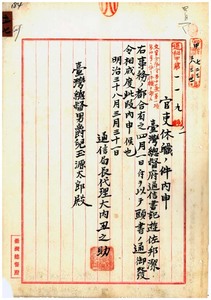 臺灣總督府通信書記遊佐邦潔文官分限令ニ依リ休職ノ件