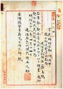 一九 鳳山郵便電信局勤務総督府通信書記補佐藤直視ニ打狗郵