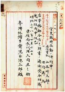 四五 総督府通信書記山本竹太郎ニ台中郵便電信局臨時在勤ヲ