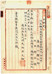 五七 総督府属奥川鐘太郎ニ台湾汽船職員懲戒委員会書記ヲ命(1905/06/20~1905/06/22);総督府属西村正雄ニ台湾汽船職員懲戒委員会書記ヲ免ス(1905/06/20~1905/06/22)
